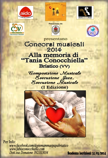BRIATICO, UN CONCORSO MUSICALE INTITOLATO A TANIA CONOCCHIELLA