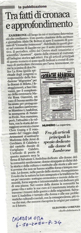 Pubblicato su Calabria Ora il 6 gennaio 2010, p. 34