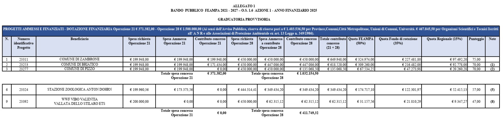 Un risultato che parla al presente ma guarda con decisione al futuro: il Comune di Zambrone si colloca al primo posto nella graduatoria provvisoria del bando europeo “Programma nazionale Feampa 2021–2027”, obiettivo specifico 1.6, Azione 1, dedicato alla tutela e al ripristino della biodiversità e degli ecosistemi acquatici.